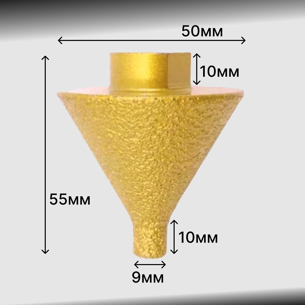 Купить Алмазное коническое сверло для снятия фаски по камню, мрамору, стеклу; резьба М14 50 х 55 мм