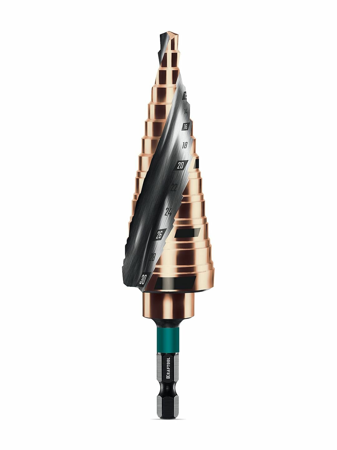 Купить Сверло ступенчатое KRAFTOOL COBALT 6-30мм, 13 ступеней, азотирование, винтовая спираль