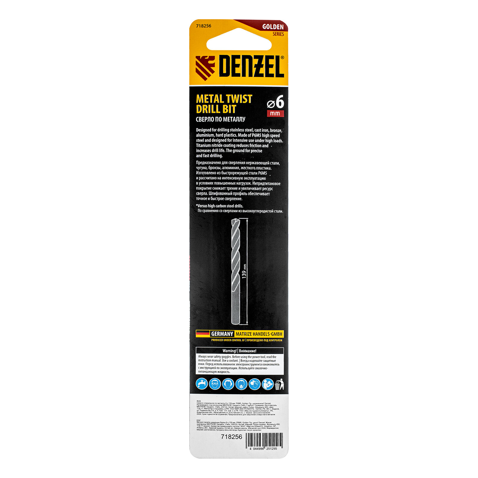 Купить Сверло спиральное по металлу Denzel 6 х 139 мм, Р6М5, Golden Tip, удлиненное 718256