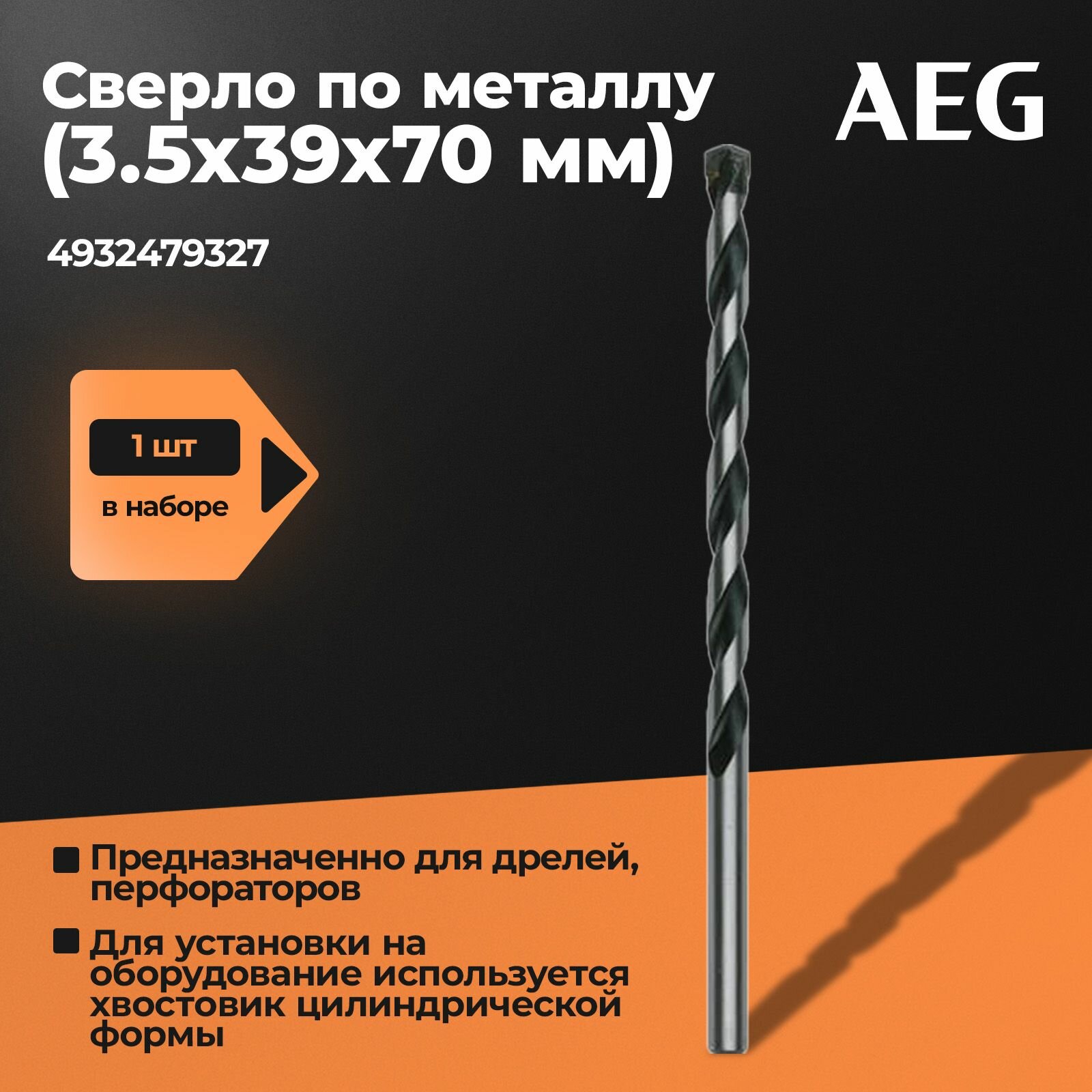 Купить Сверло по металлу AEG, HSS-Co, 3.5х39х70мм, AAKHSSCBT3-5, 4932479327