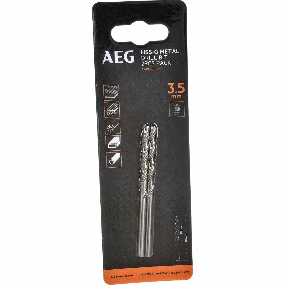 Купить Сверла AEG, HSS-G 2шт, 3.5mm, AAKHSSG035, 4932479307