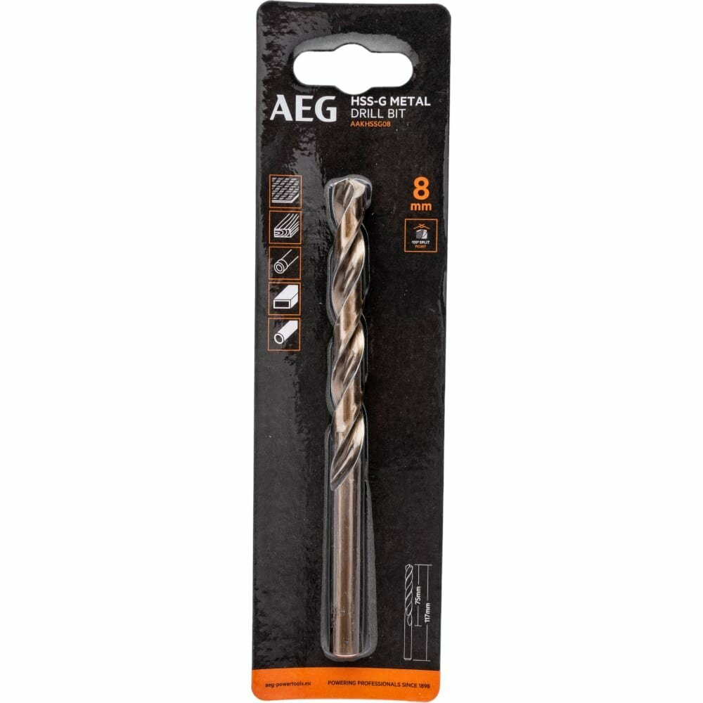Купить Сверло по металлу AEG, HSS-G, 8х75х117мм, AAKHSSG08, 4932479315