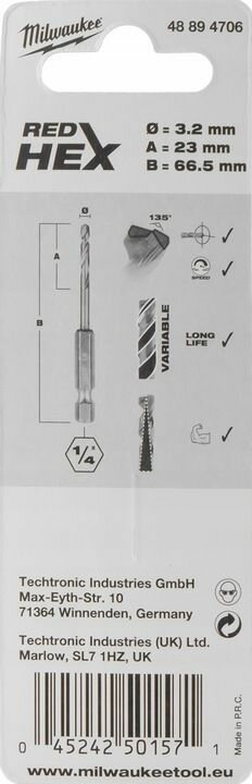 Сверло по металлу Milwaukee RedHEX HSS-G TiN-Покрытие из нитрида титана-4889417