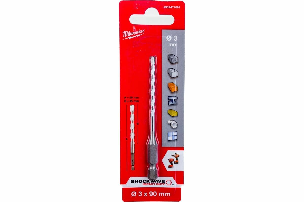 Купить Сверло по мультиматериалам (3x90 мм; хвостовик HEX) Milwaukee 4932471091 Оригинал