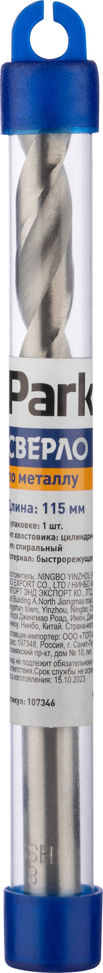 Купить Сверло по металлу цилиндрическое HSS Park, 8 x 115 мм, 1 шт.