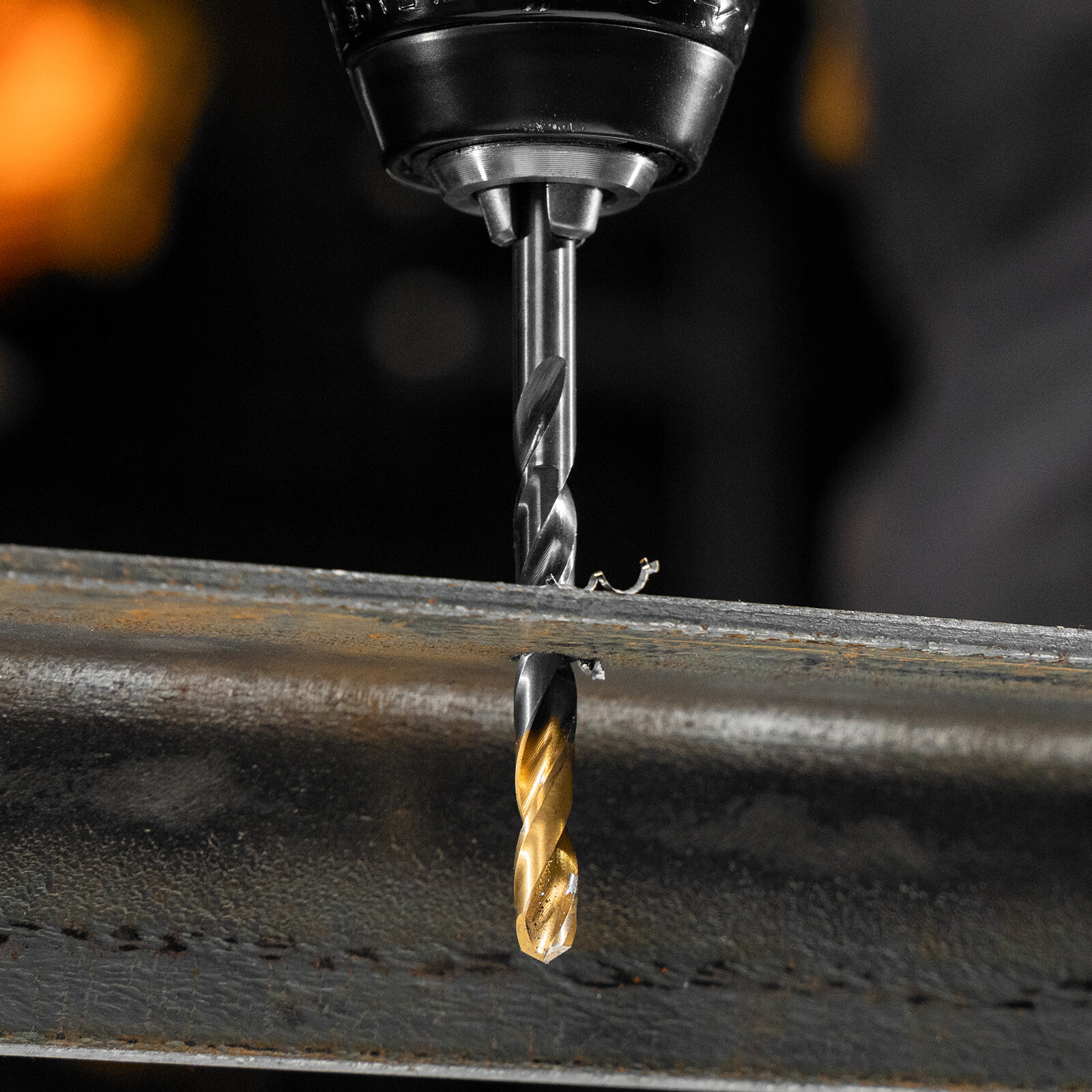 Сверла по металлу Denzel Golden Tip, 1-13 мм, 25 штук, сталь Р6М5К8-TiN, цилиндрические и 3-гранные хвостовики, 723010