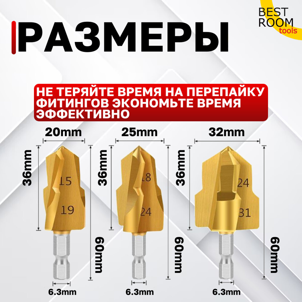 Купить Ступенчатое сверло Best Room, для расширения полипропиленовых труб, 32мм, металл, набор сверл для полипропилена 20/25/32