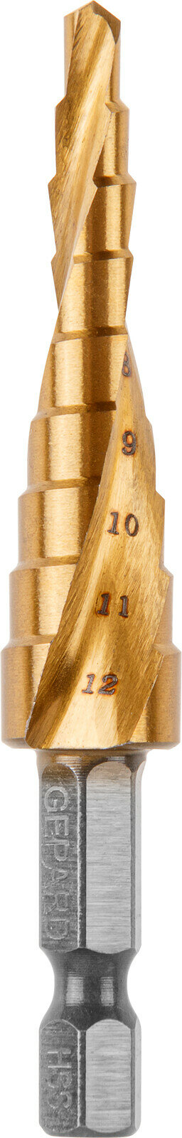 Сверло по металлу ступенчатое 4-12 мм HSS TIN GEPARD (GP0304-12)