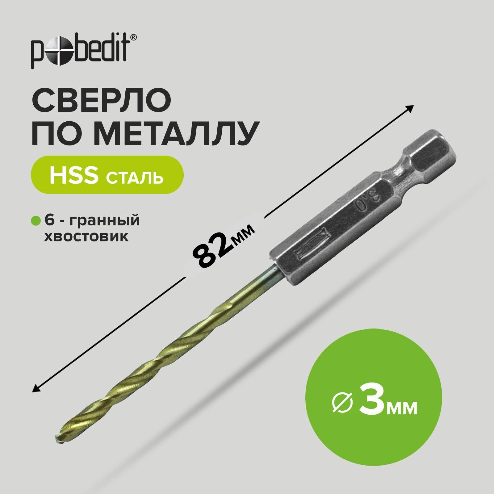 Сверло по металлу, нитрид титановое покрытие 3 х 82 мм Pobedit интересное: