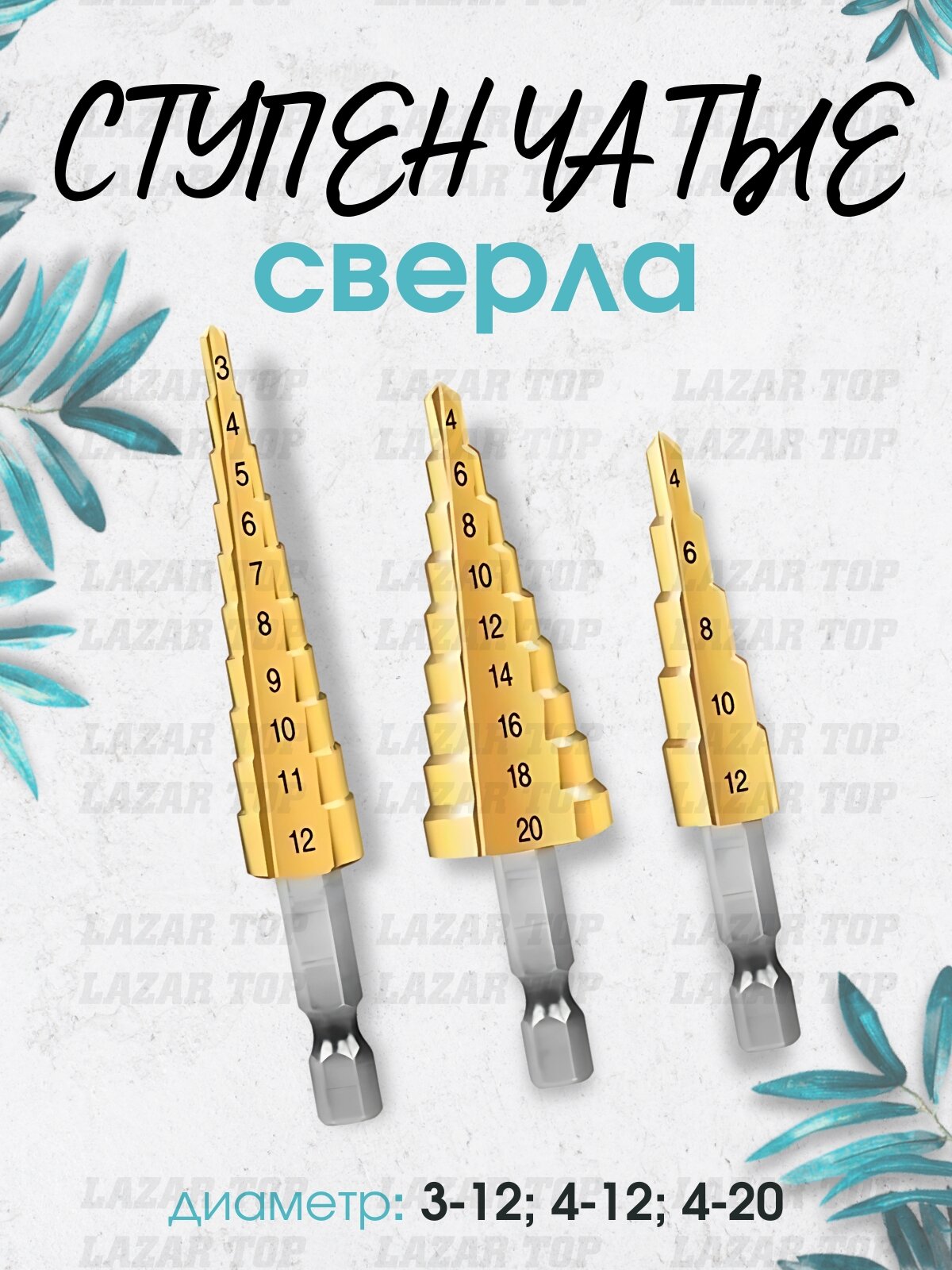 Ступенчатые сверла LAZAR TOP, HSS 4241, шестигранный хвостовик, набор 3шт интересное: