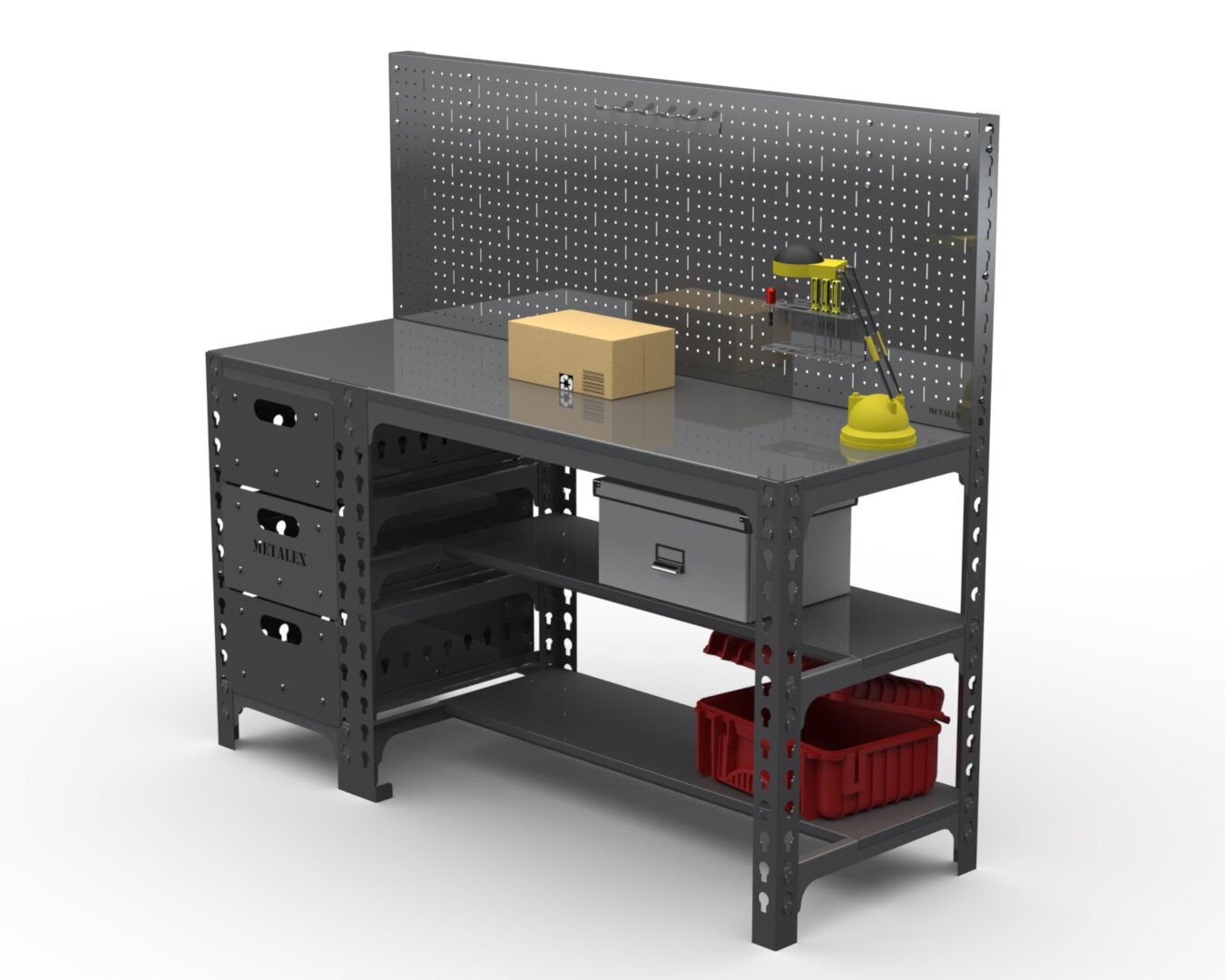 Купить Стол металлический Metalex 750х1600х400 с выдвижными ящиками и перфопанелью (серый)