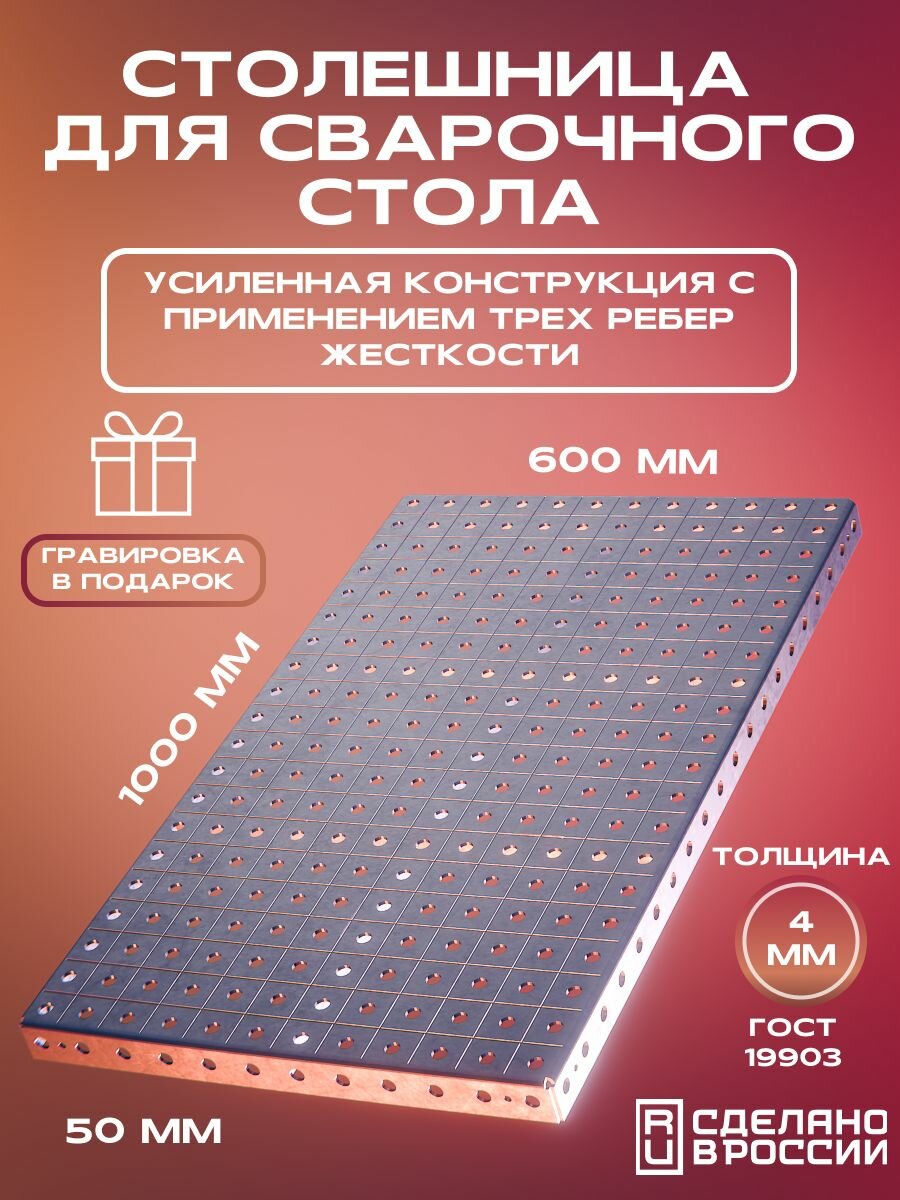 Столешница для сварочного стола 1000х600х50 4 мм усиленная под крепёж 8мм интересное: