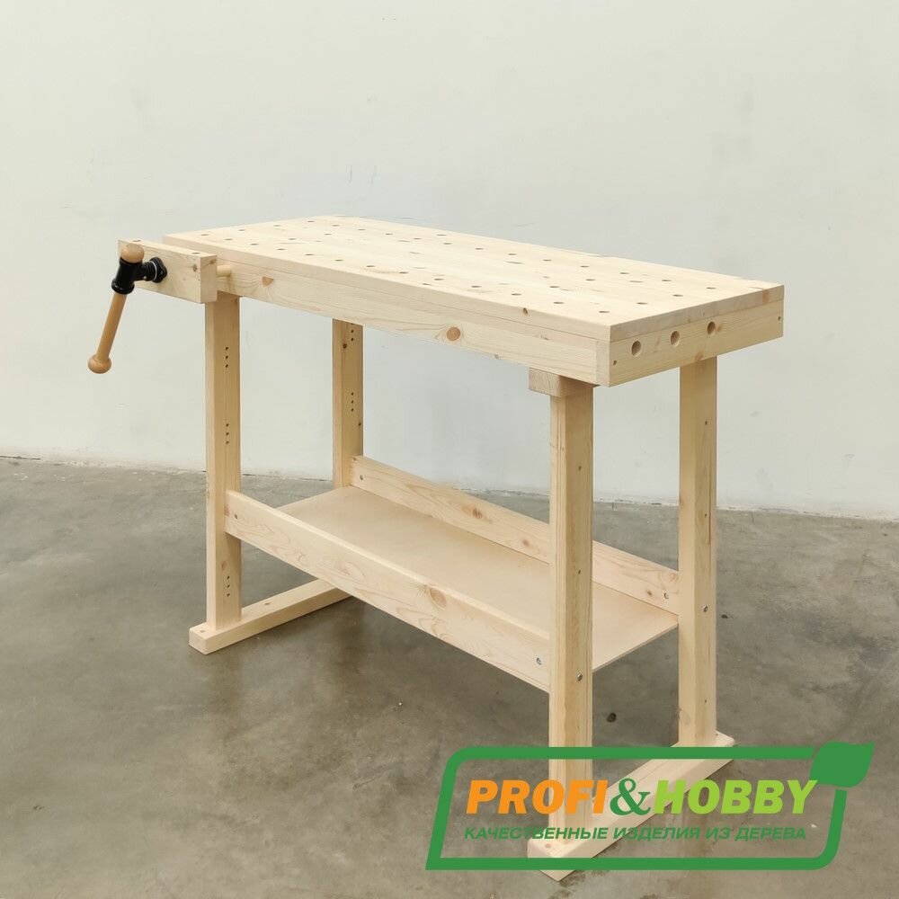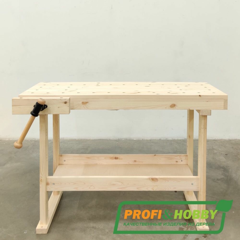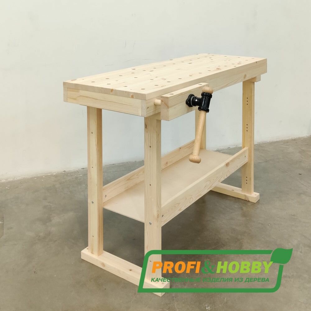 Купить Деревянный верстак "Школьный" для столярных работ, с тисками, 1 полка