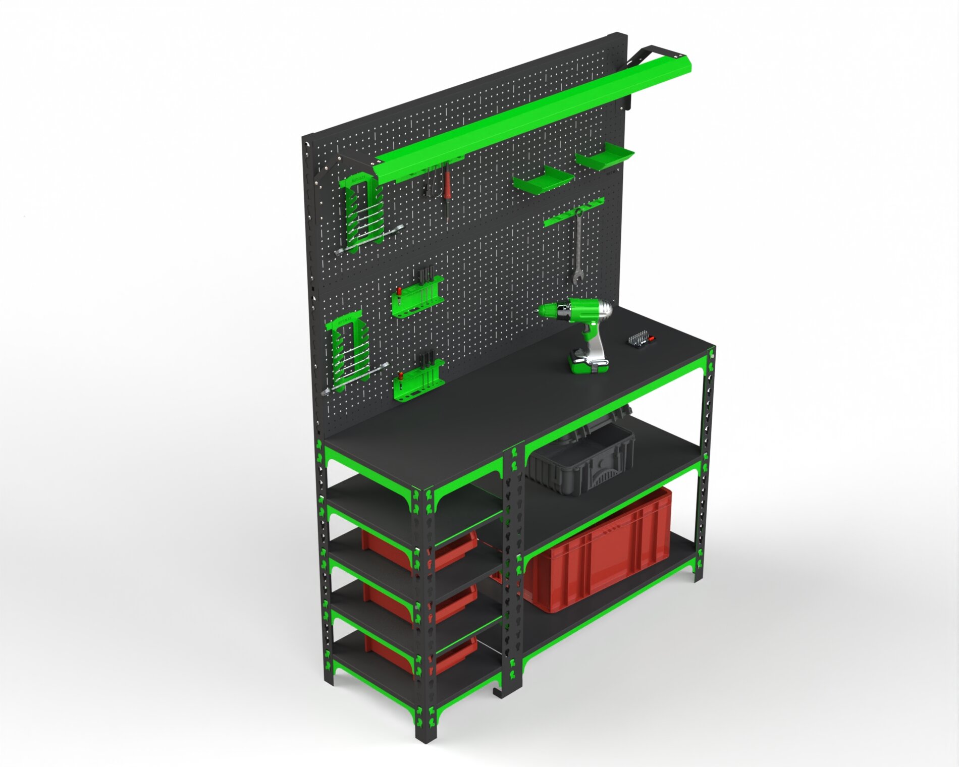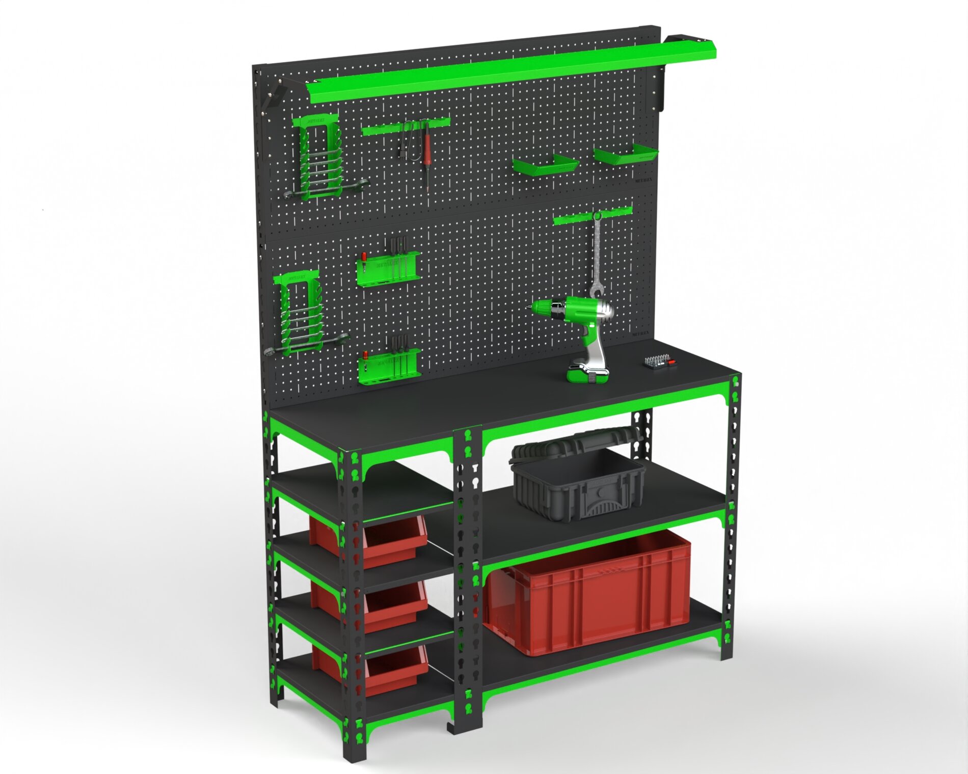 Верстак Metalex 950х1800х600 серия SUN (с бок. полками, 2-мя панелями и комп. освещения) интересное: