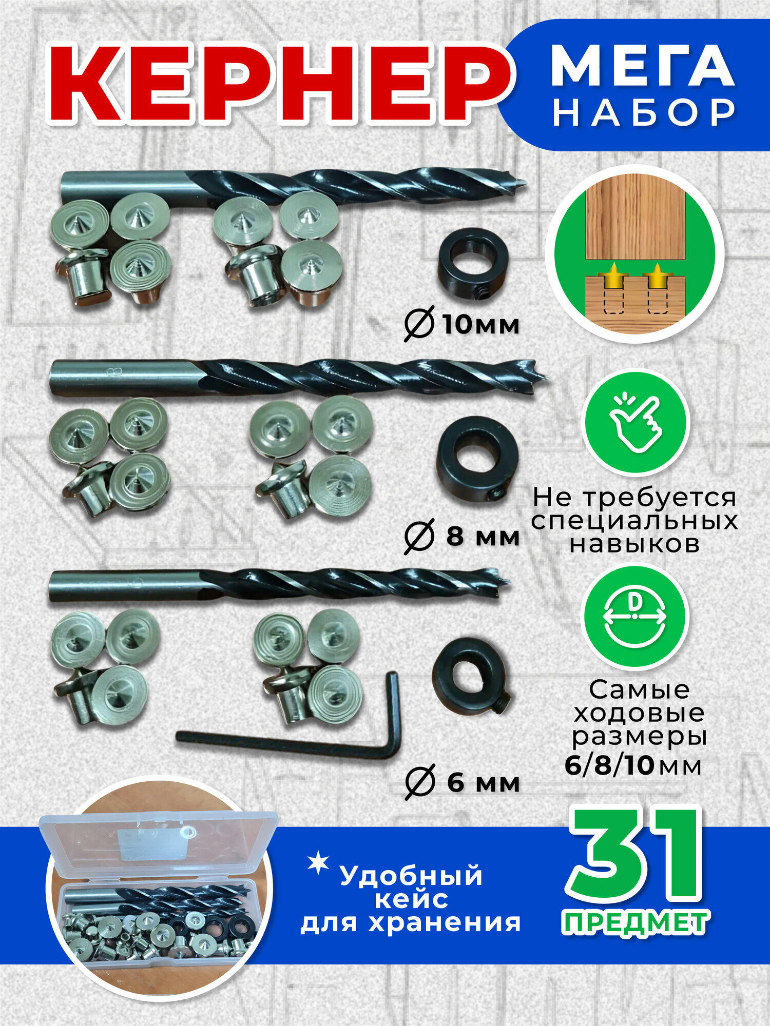 Ниже Вы можете прочитать отзывы на Набор кернеров, для дерева, круглое сечение, 31 предмет, 6, 8, 10 мм, ознакомится с подробными характеристиками, посмотреть интересные обзоры и фотографии на Набор кернеров, для дерева, круглое сечение, 31 предмет, 6, 8, 10 мм.