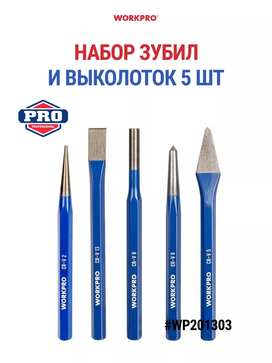 Набор зубил и выколоток WORKPRO WP201303, 5 шт. в органайзере интересное: