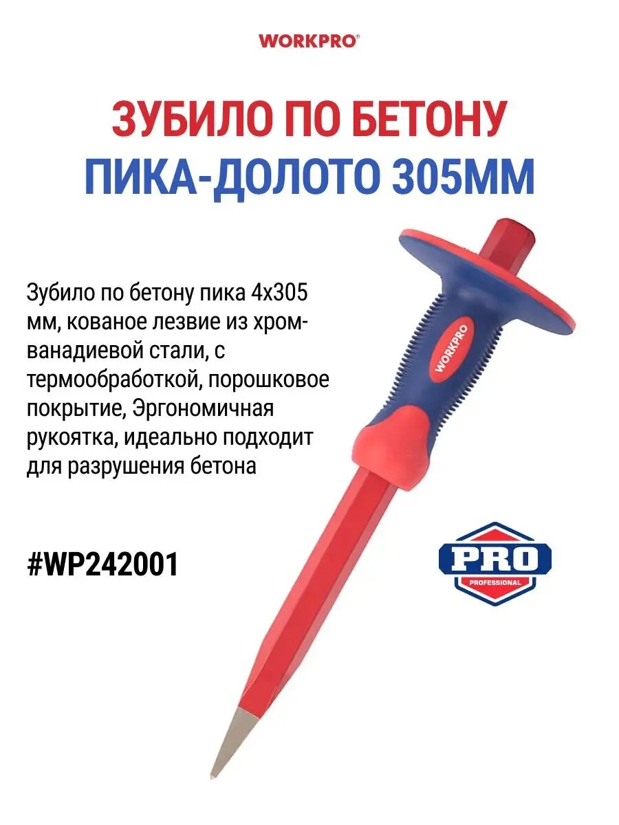 Зубило по бетону пика-долото 305мм WP242001, WORKPRO #WP242001 интересное: