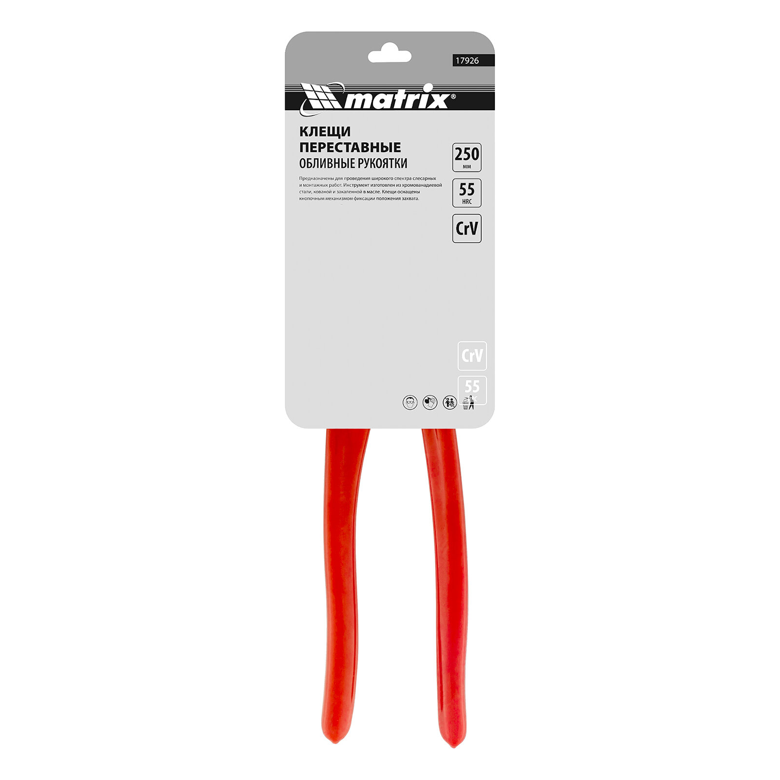 Купить Клещи переставные Matrix 250 мм, кнопочный механизм, хром-ванадий, обливные рукоятки 17926