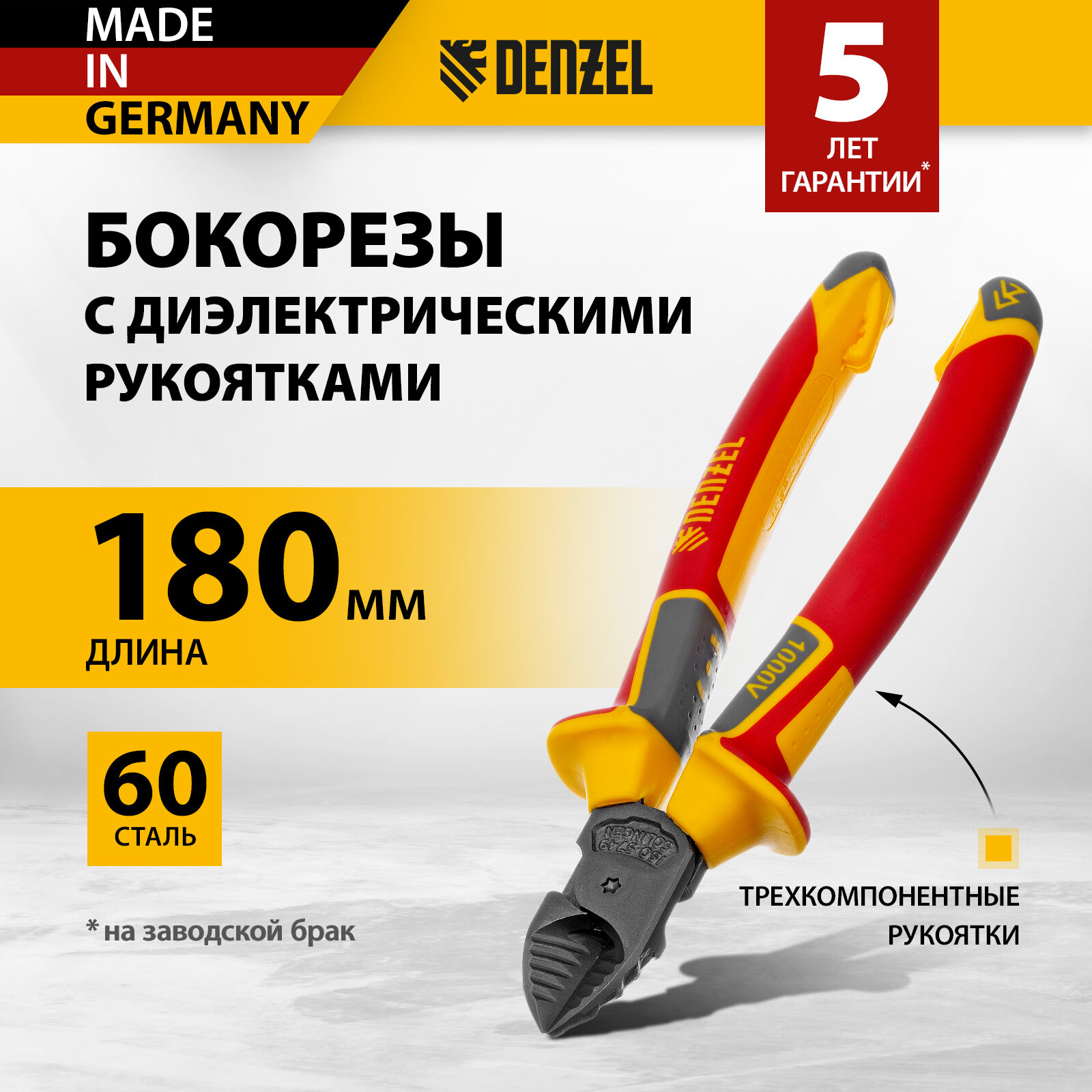 Бокорезы Denzel диэлектрические рукоятки, до 1000 В, трехкомпонентные рукоятки, 180 мм 17789 интересное: