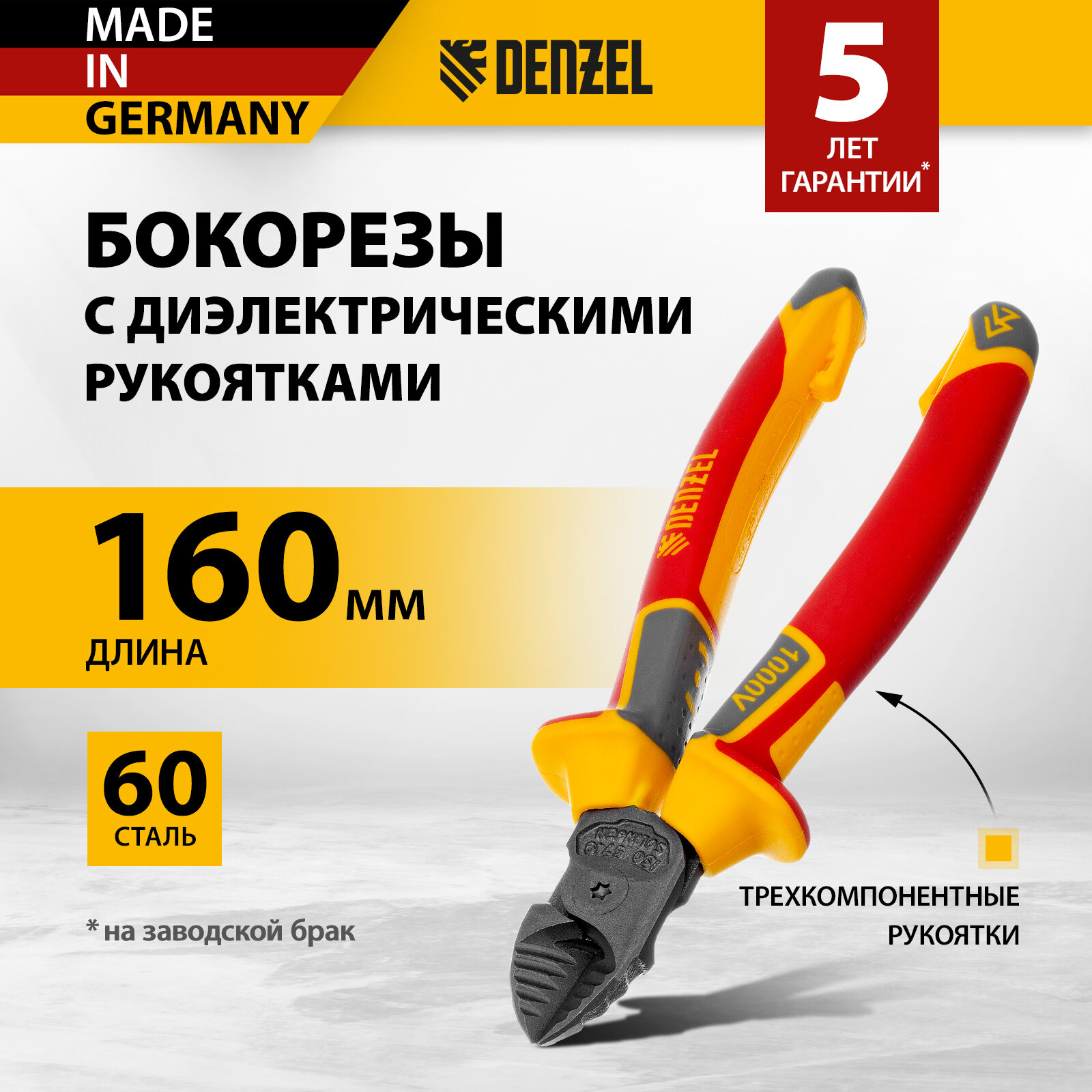 Бокорезы Denzel диэлектрические рукоятки, до 1000 В, трехкомпонентные рукоятки, 160 мм 17788 интересное: