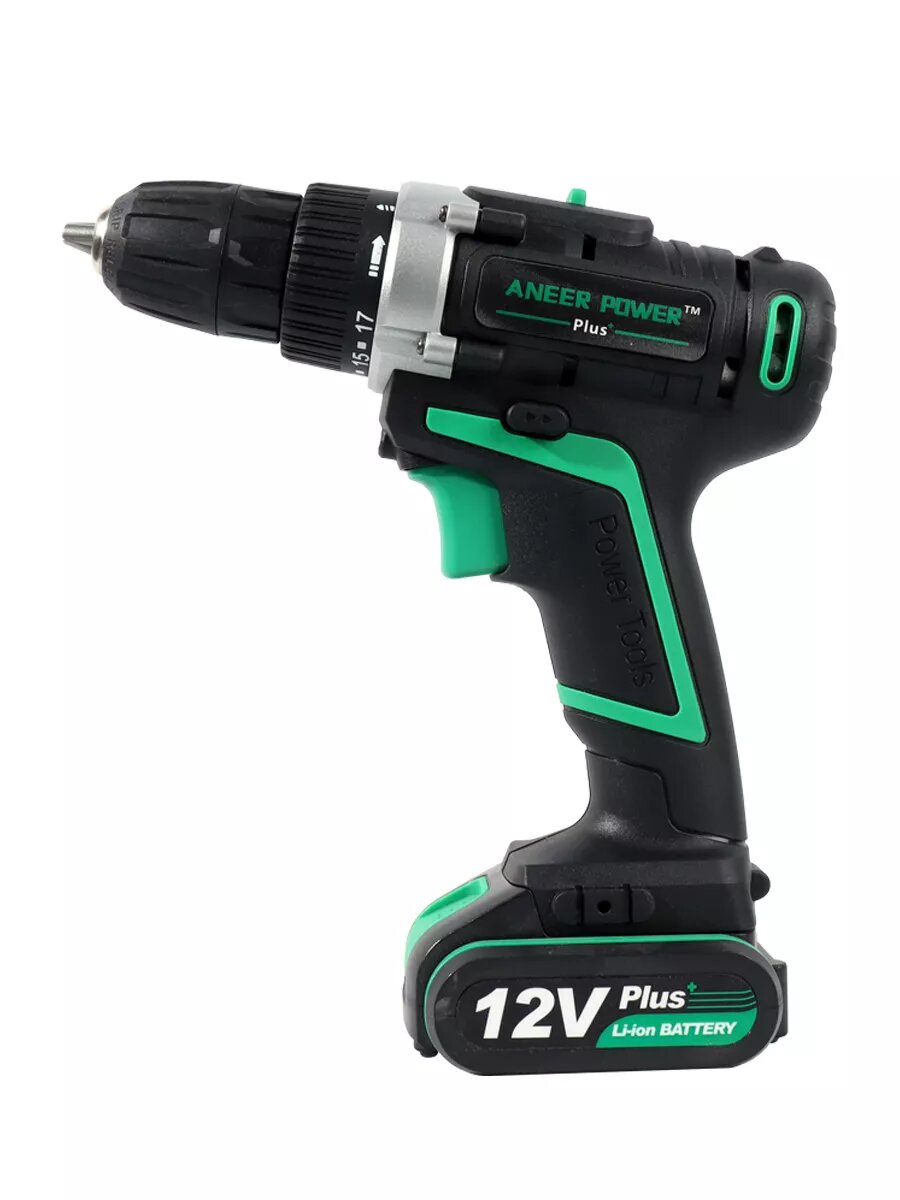 Купить Шуруповерт AneerPower, ударный, 12В, бесщеточный, металл, пластик, зеленый 1 аккумулятор 1,5 Ач.