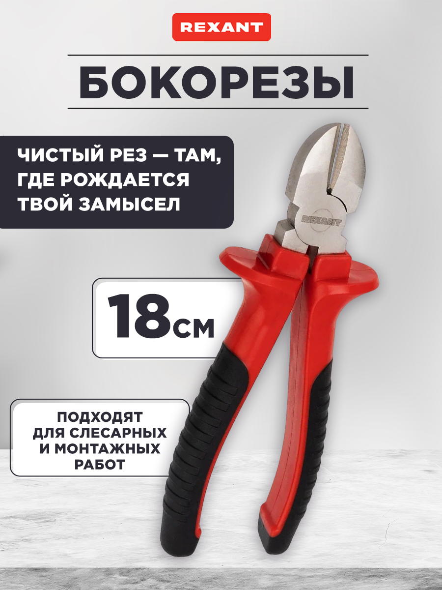 Никелированные бокорезы (боковые кусачки) с двухкомпонентными рукоятками 180 мм REXANT интересное: