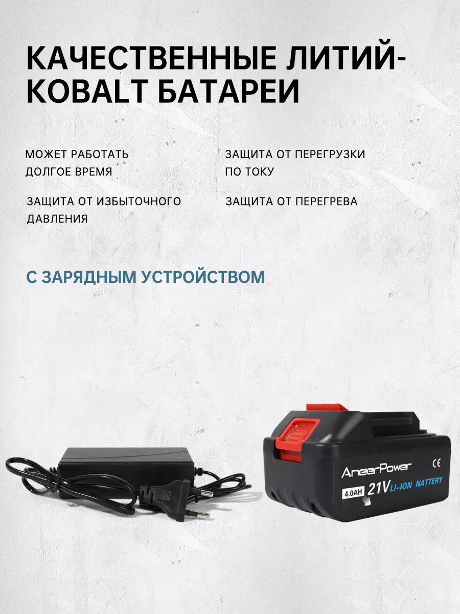 Шуруповёрт ANEERPOWER, ударный, 21V, бесщёточный, синий 2 аккумулятора 4,0 Ач. интересное: