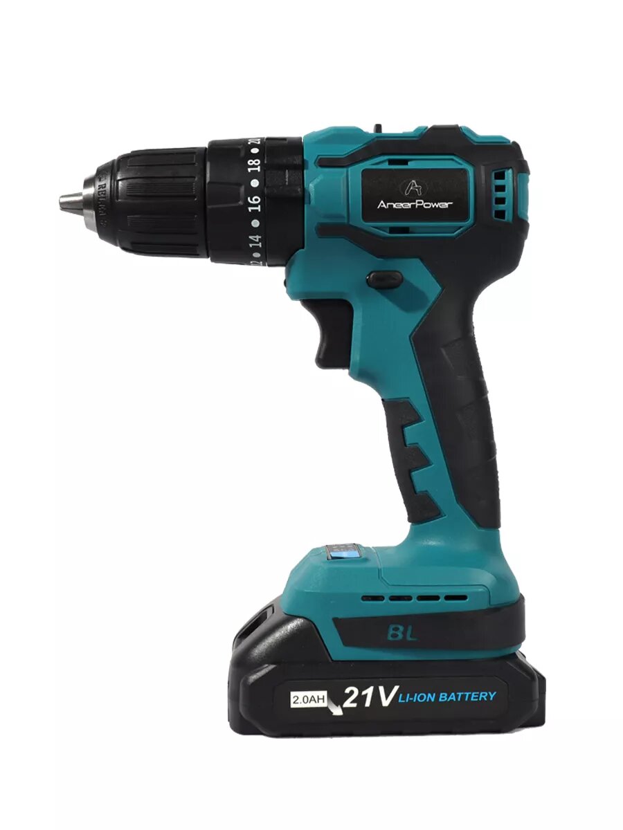 Шуруповёрт ударный Aneerpower, синий, с антистатиком, пластик, сталь, 13мм 1 аккумулятор 2,0 Ач. интересное: