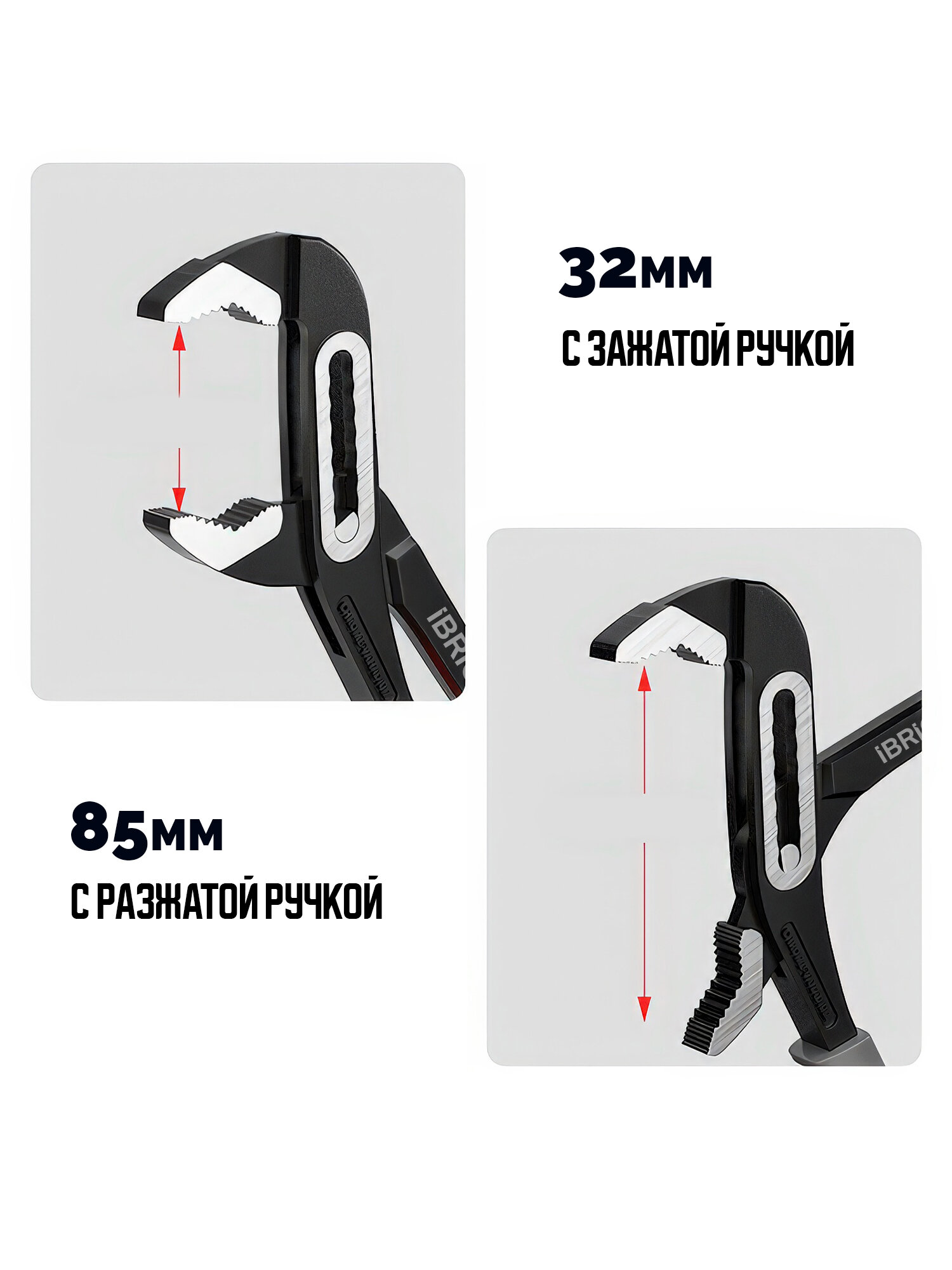 Клещи IBRICO, хром-ванадий, переставная конструкция, черно-серые, 25 см интересное: