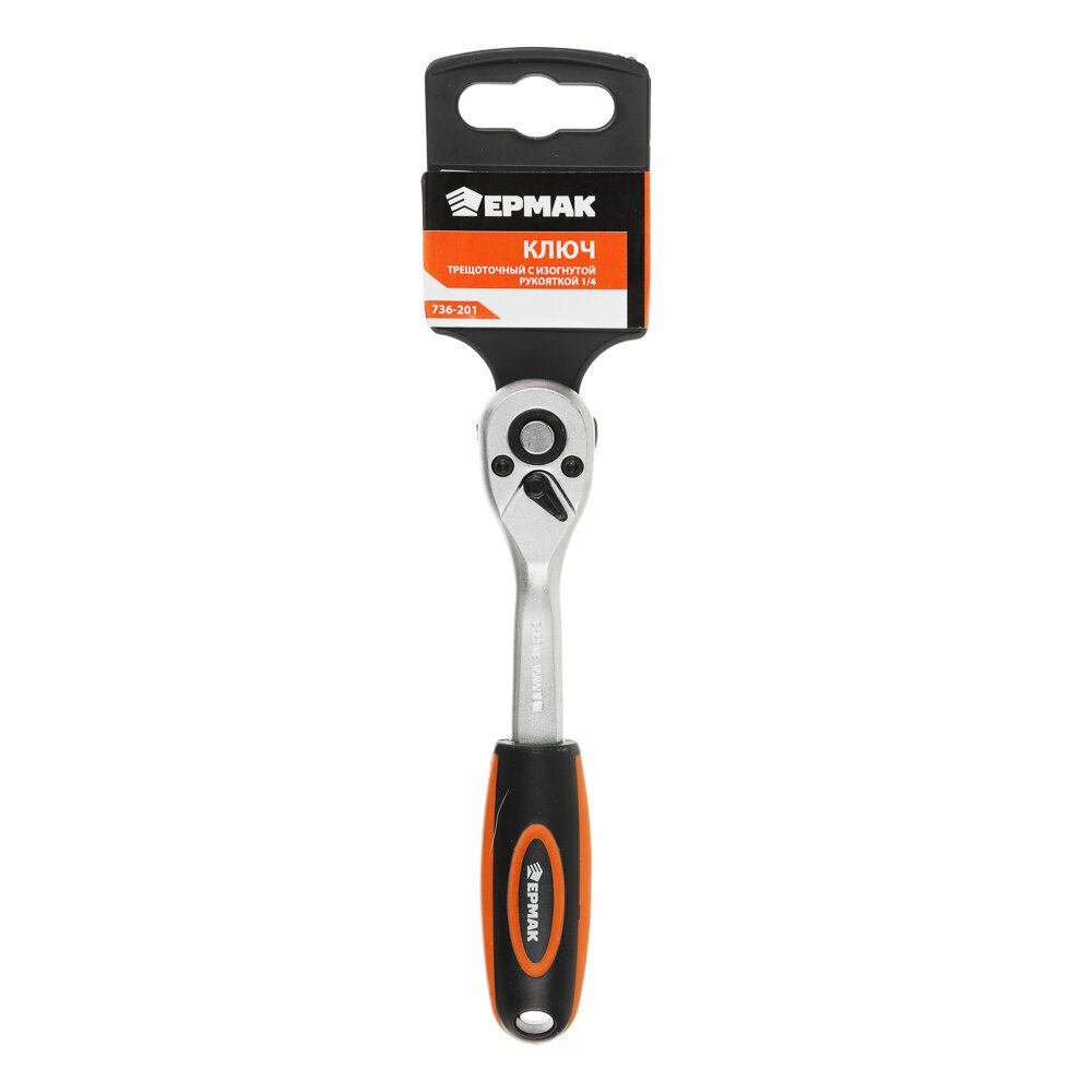Купить Трещоточный ключ 1/4 с изогнутой рукояткой ЕРМАК для торцевых головок