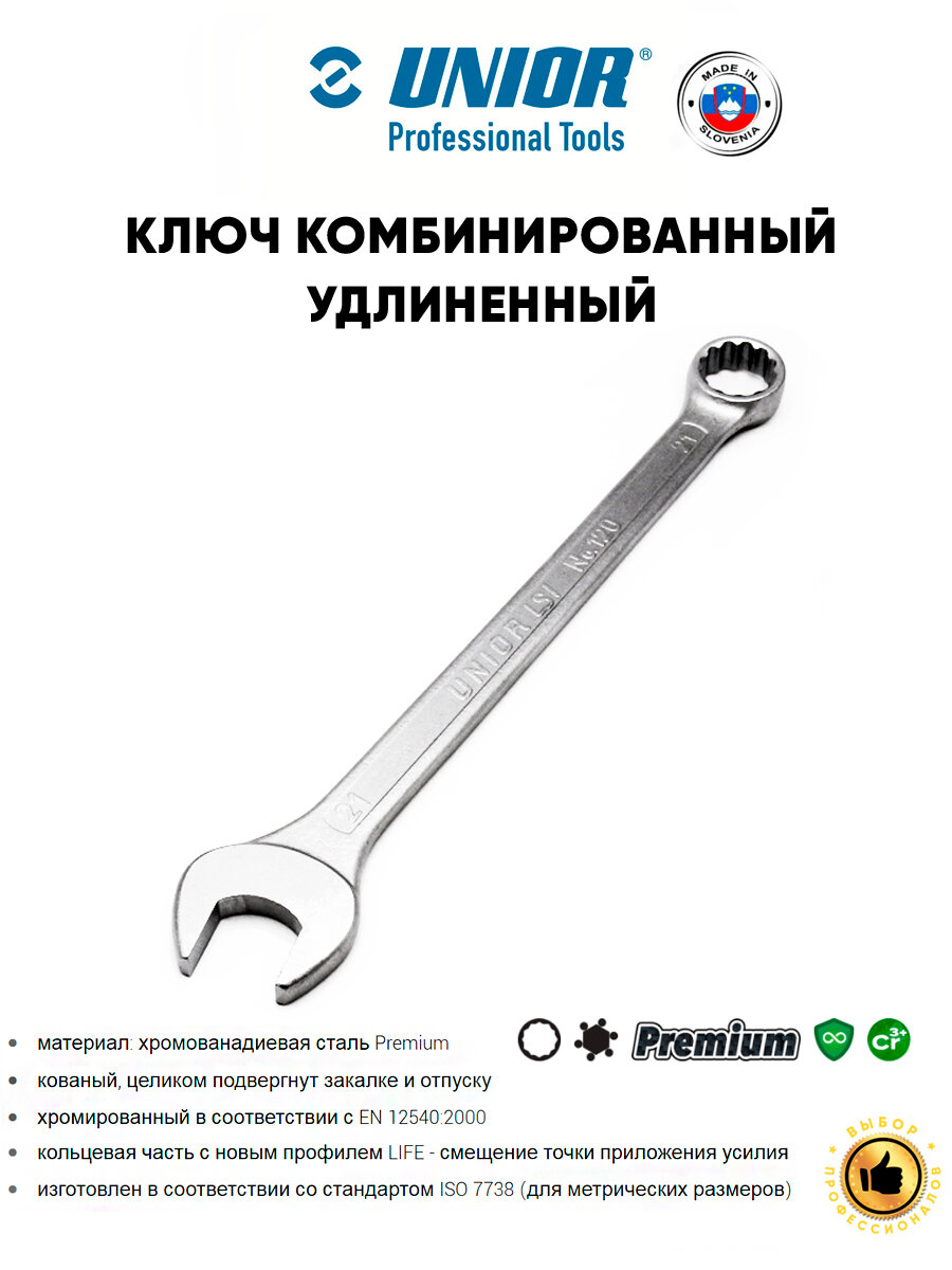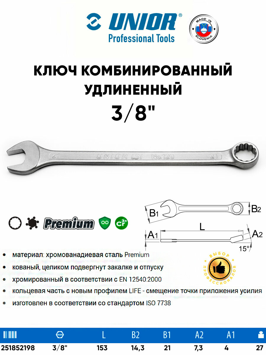 UNIOR Ключ комбинированный удлиненный 3/8' 120/2 интересное: