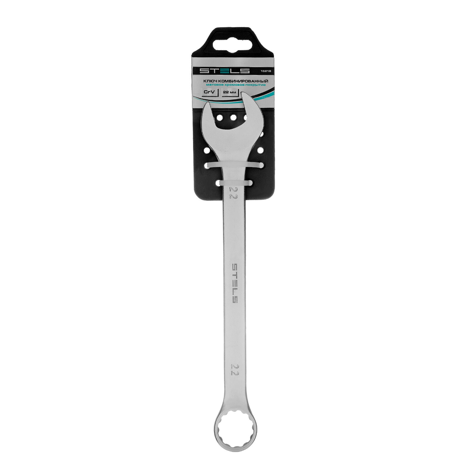 Купить Ключ комбинированный Stels, 22 мм, 12 граней и изогнутая кольцевая часть, сталь CrV, матовый хром, гаечный ключ, 15216