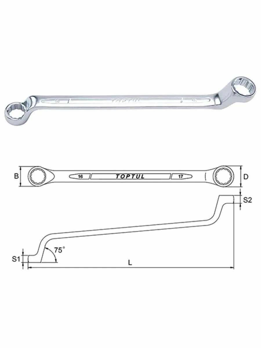 Ключ накидной 13х14 мм двусторонний рожково-накидной гаечный угол 75 градусов для автомобиля AAEI1314 TOPTUL интересное:
