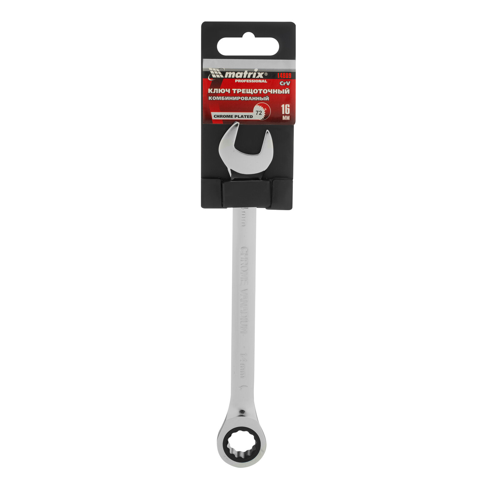 Купить Ключ комбинированный трещоточный Matrix 16мм, CrV, зеркальный хром 14809