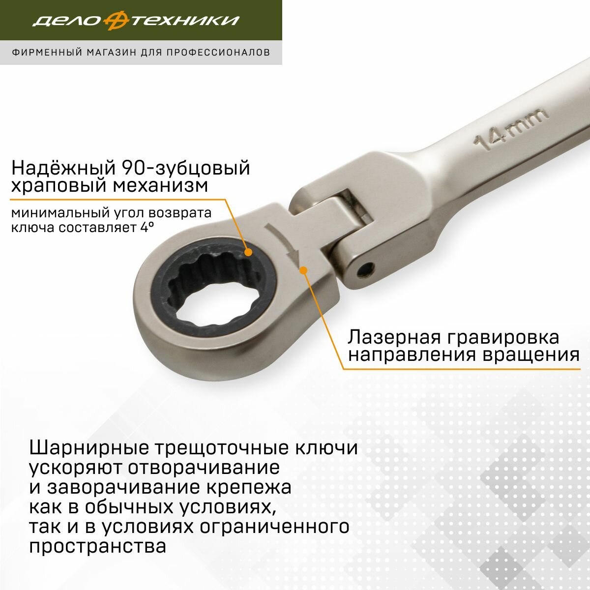 Ключ трещоточный шарнирный двусторонний 14 × 15 мм, Дело Техники, 515815 интересное: