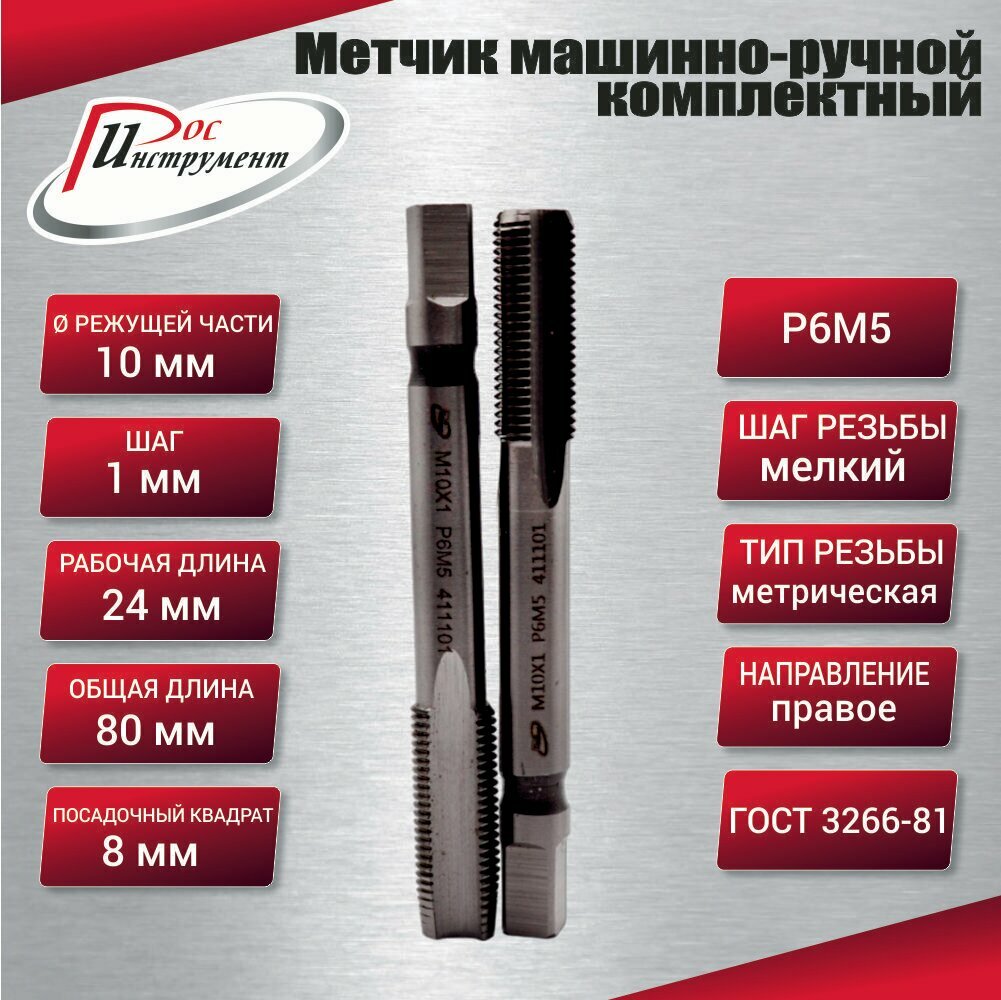 Метчик машинно-ручной М 10,0 х 1,0 комплектный 2 шт. ГОСТ 3266-81 Р6М5 интересное:
