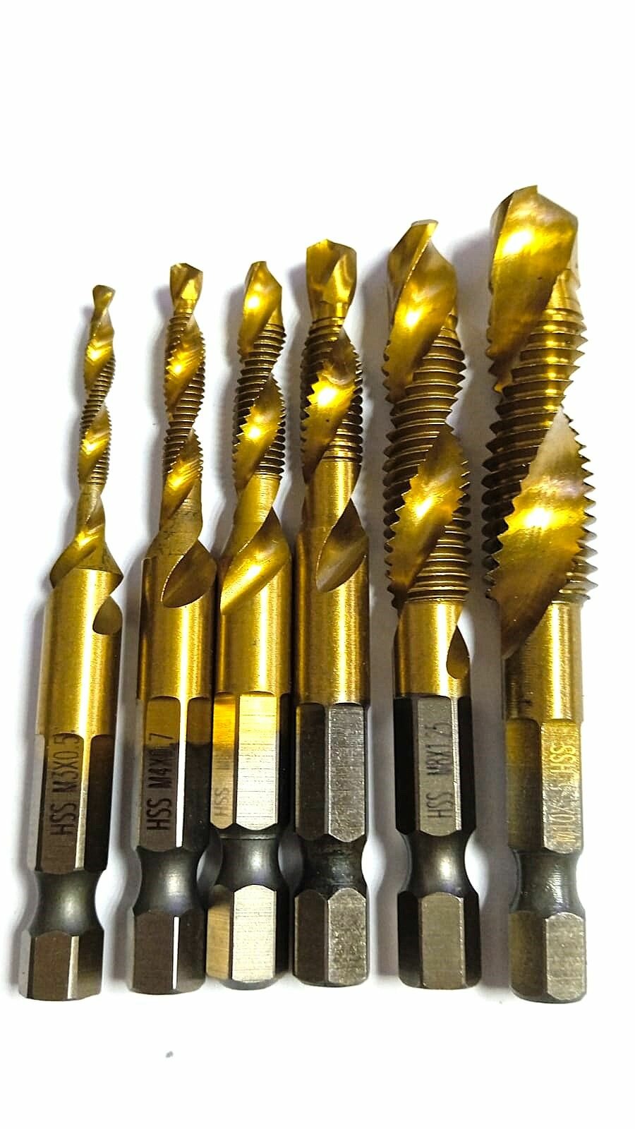 Сверло для сверления и нарезания резьбы 6 штук М3-М10 с шестигранным хвостовиком, титановое покрытие интересное: