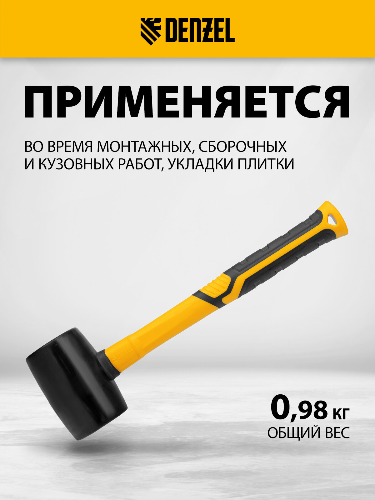 Киянка резиновая Denzel 680 г, черная, фибергласовая рукоятка c TPR покрытием 11145 интересное: