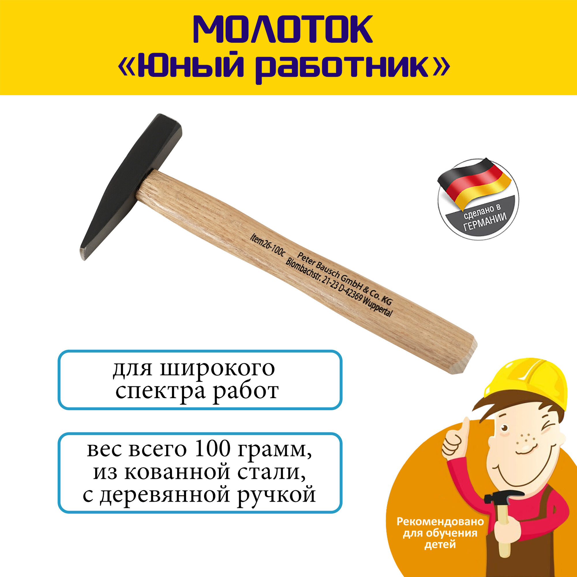 Молоток Pebaro "Юный работник", детский, кованая сталь, деревянная ручка, 200мм, 100 гр. интересное: