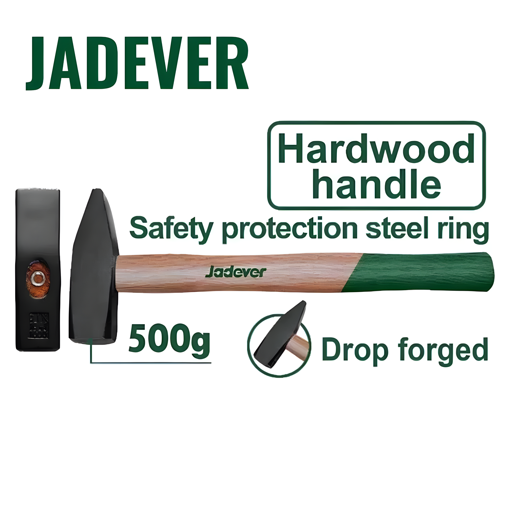 Купить Молоток JADEVER 500гр с деревянной ручкой и бойком из углеродистой стали