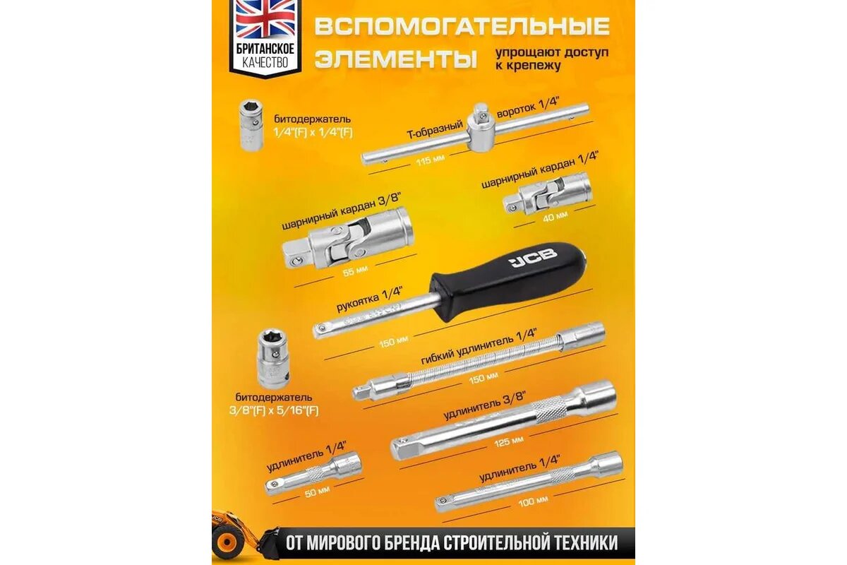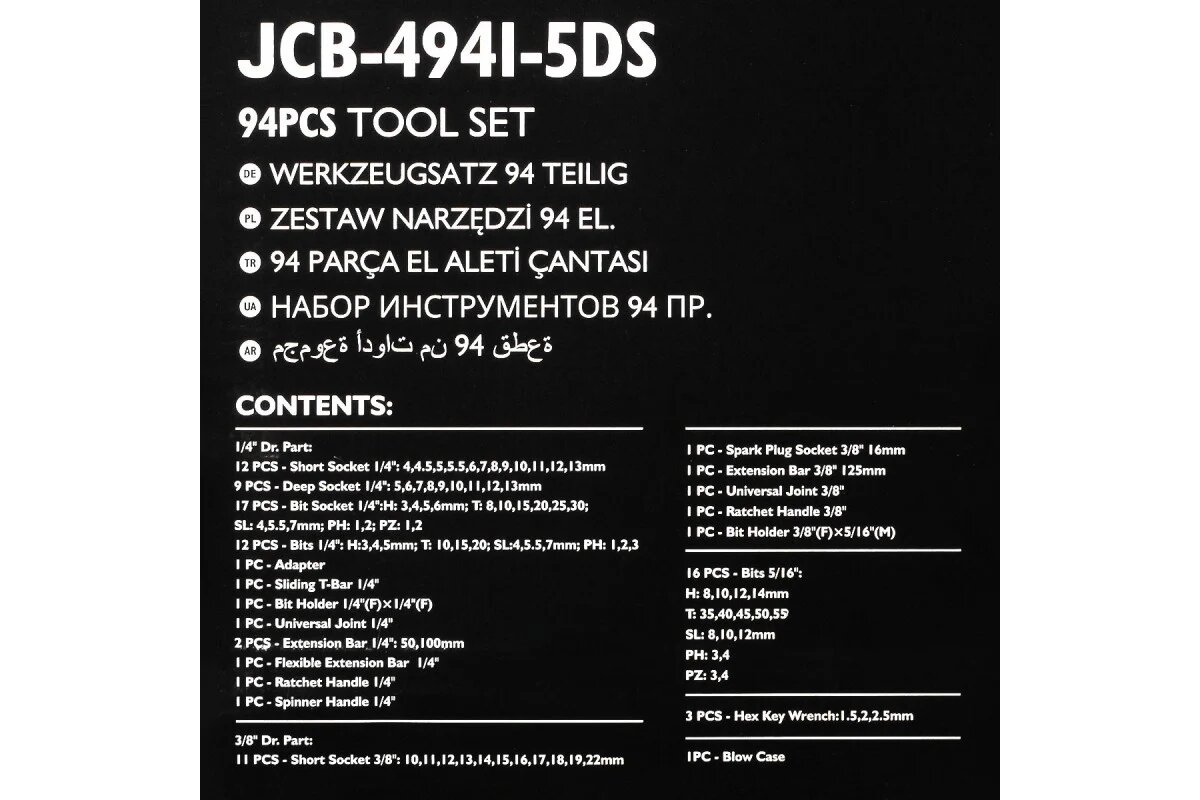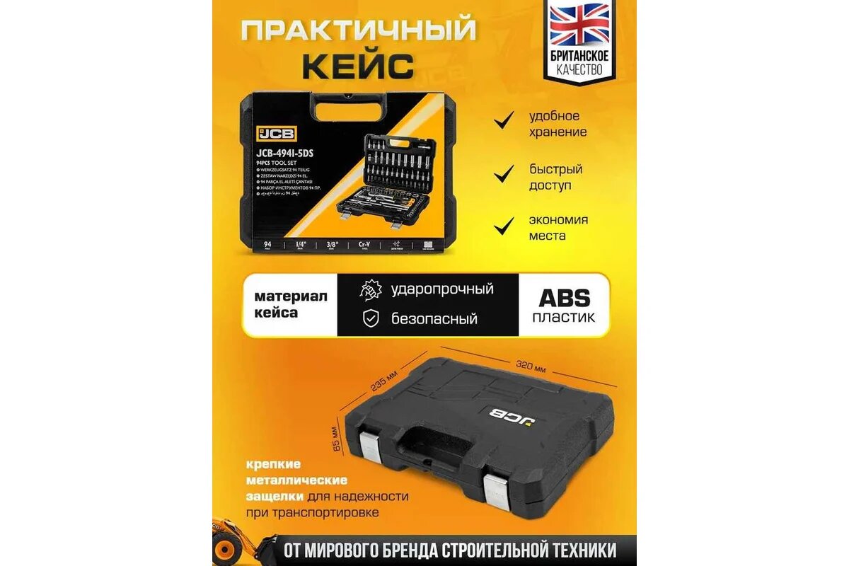 Набор инструментов JCB 4941-5DS, 1/4", 3/8" (6гр), 94 шт, хромованадиевая сталь интересное: