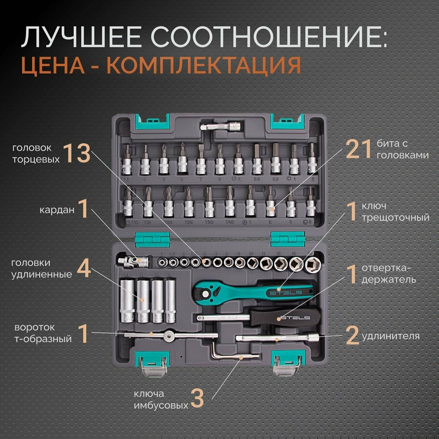 Набор инструментов STELS 1/4", Cr-V, S2, усиленный кейс, 47 предметов (14099) интересное: