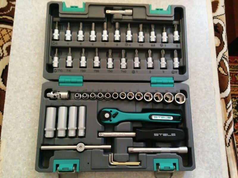 Ниже Вы можете прочитать отзывы на Набор инструментов STELS 1/4", Cr-V, S2, усиленный кейс, 47 предметов (14099), ознакомится с подробными характеристиками, посмотреть интересные обзоры и фотографии на Набор инструментов STELS 1/4", Cr-V, S2, усиленный кейс, 47 предметов (14099).