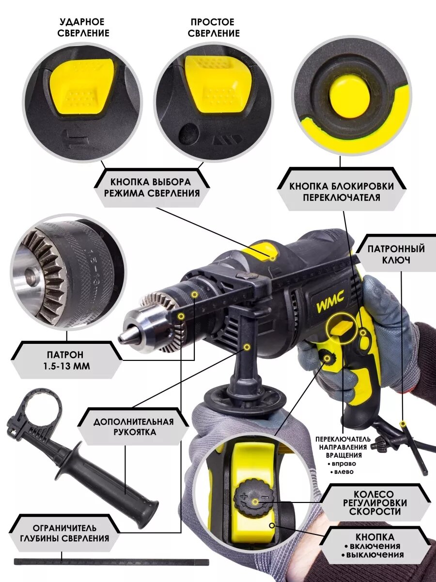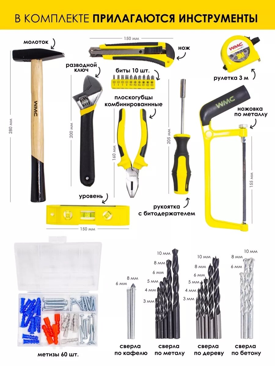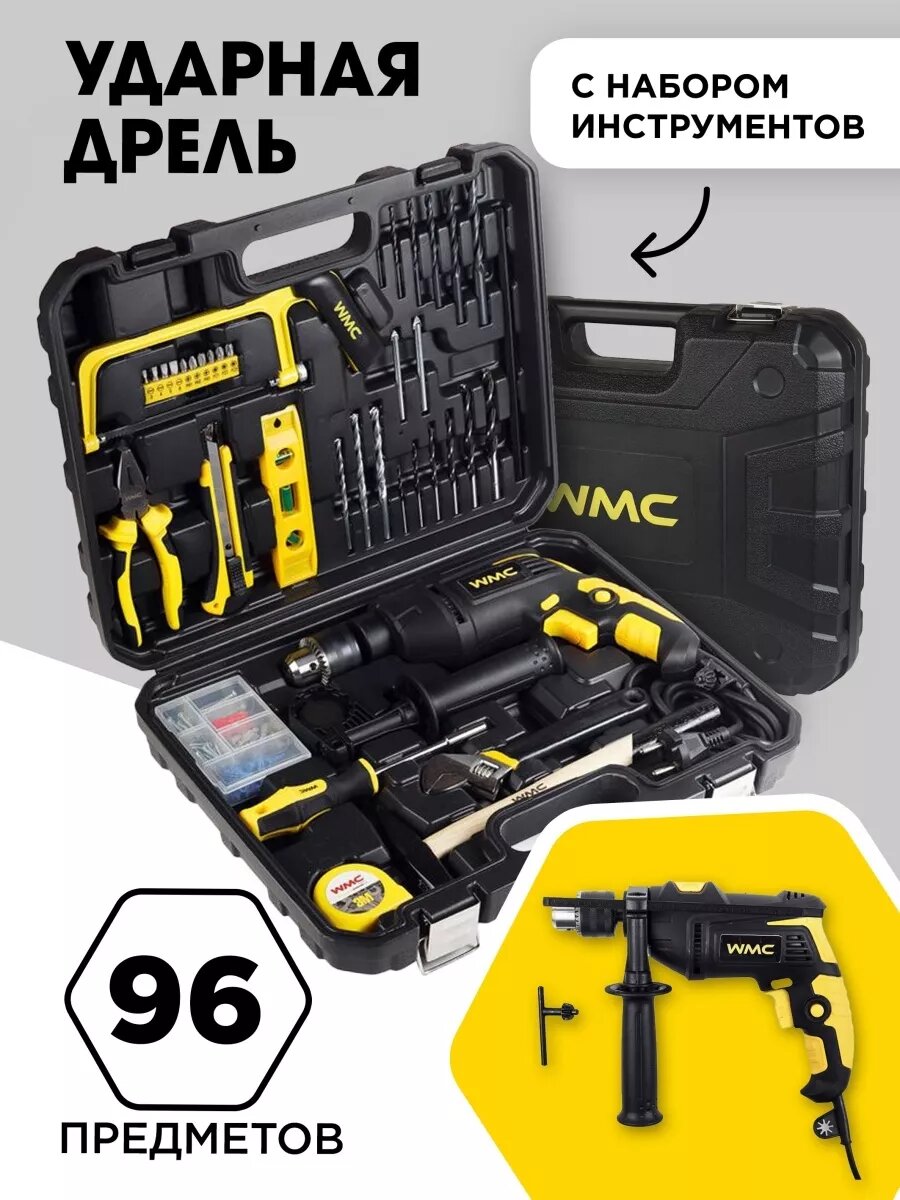 Набор инструментов WMC TOOLS, для дома, с дрелью, 94 предмета, в кейсе интересное: