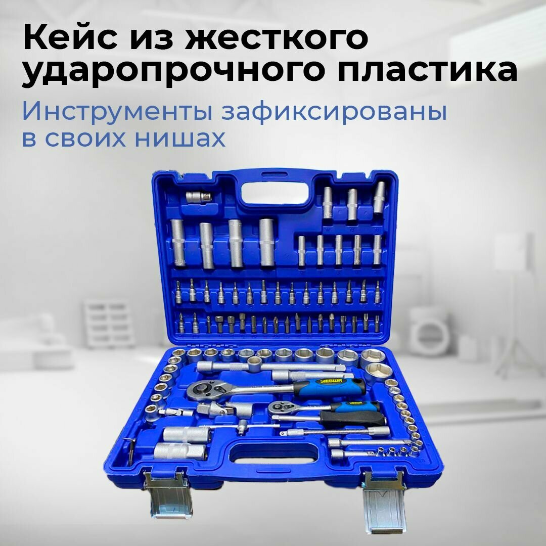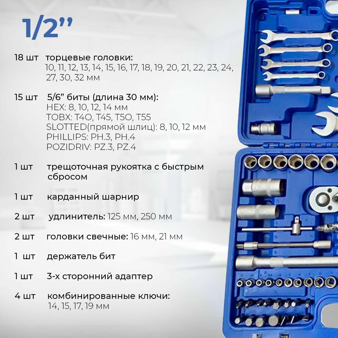Купить Набор инструментов в кейсе 94 предмета 1/2" 1/4" торцевые головки, ключи, биты с трещоткой