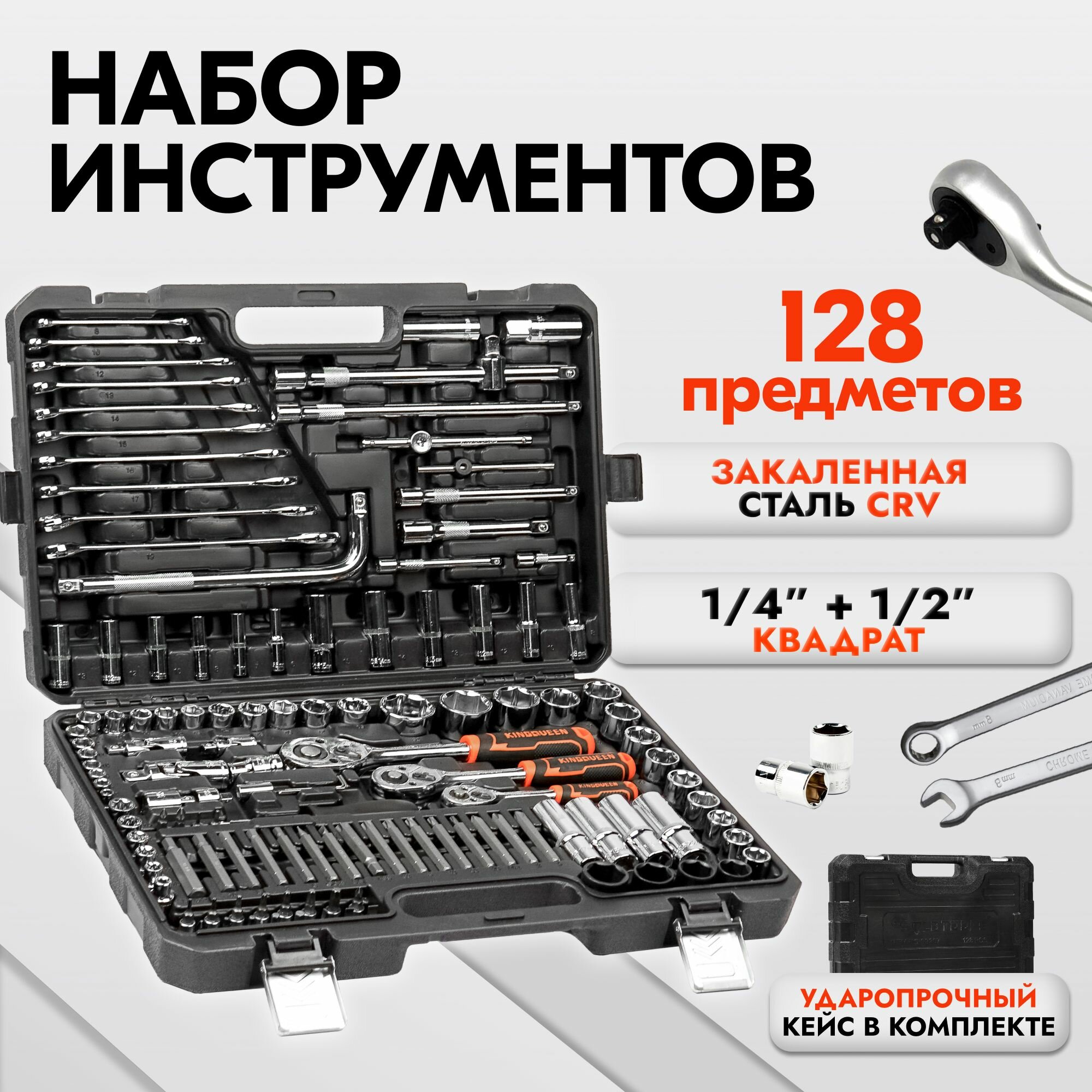 Купить Набор инструментов для автомобиля и дома в чемодане KINGQUEEN 128 предметов, 72 зуба