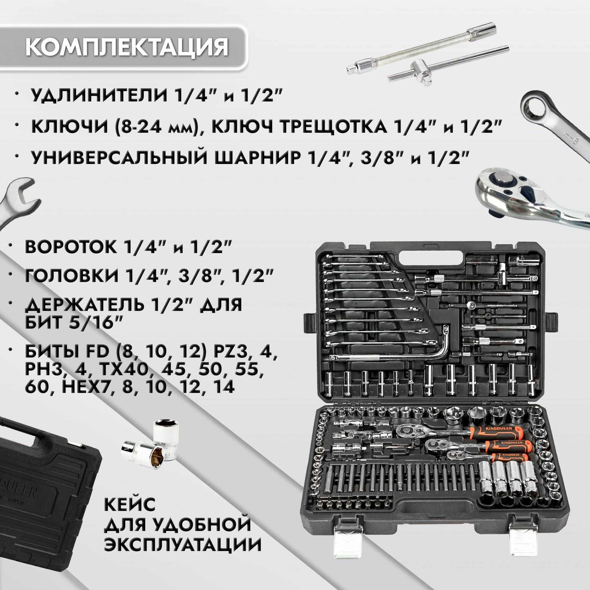 Набор инструментов для автомобиля и дома в чемодане KINGQUEEN 128 предметов, 72 зуба интересное:
