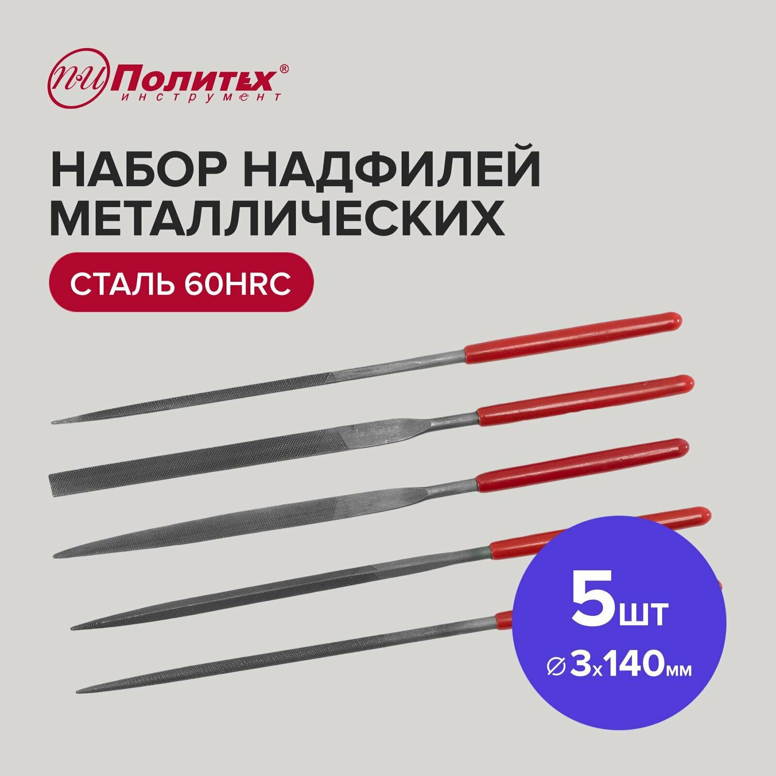 Купить Набор надфилей металлических 140 мм х 3 мм 5 штук, Политех Инструмент