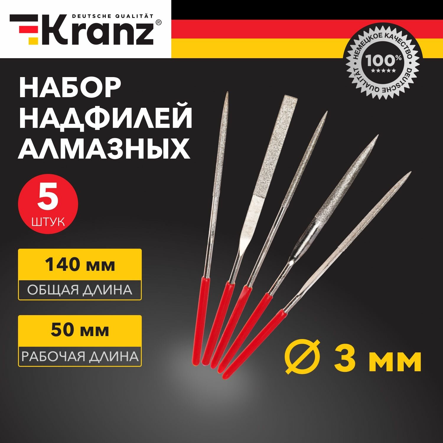 Надфили по металлу набор алмазные 140х50х3 мм KRANZ 5 шт интересное:
