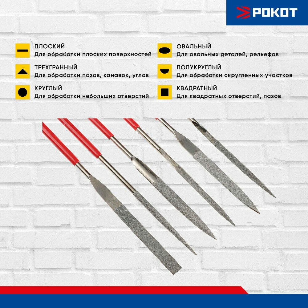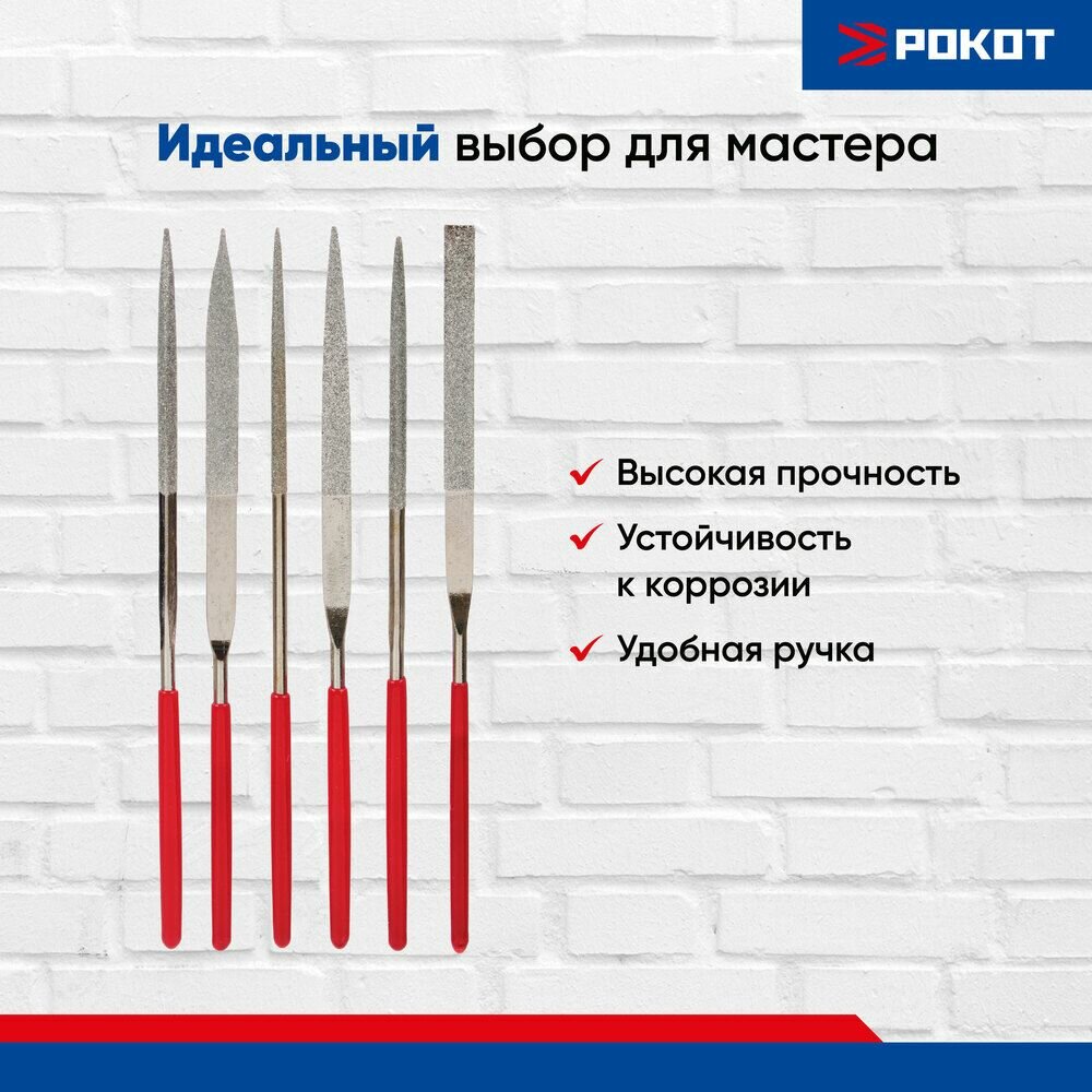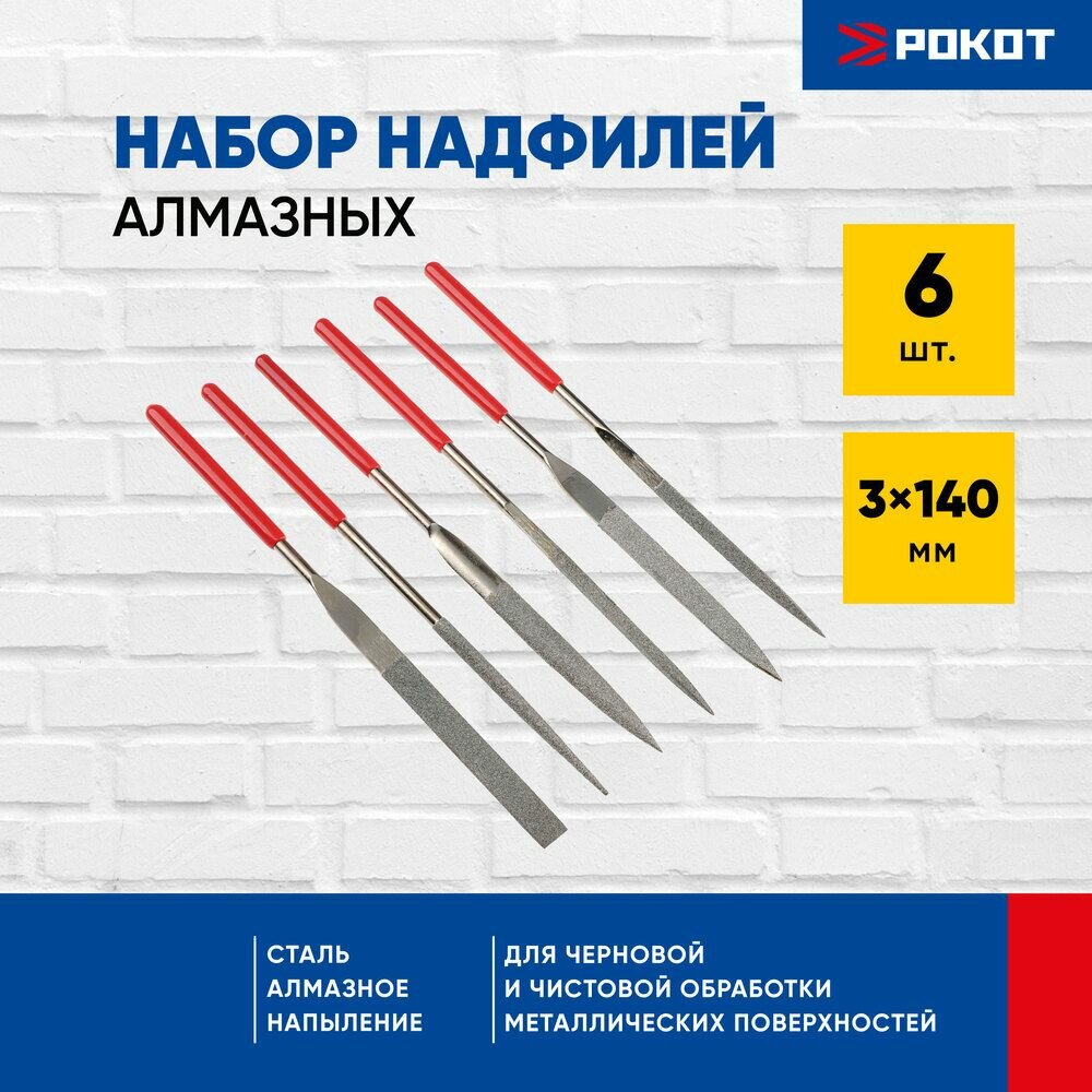 Набор надфилей алмазных рокот 6шт, размер 3x140мм, блистер интересное: